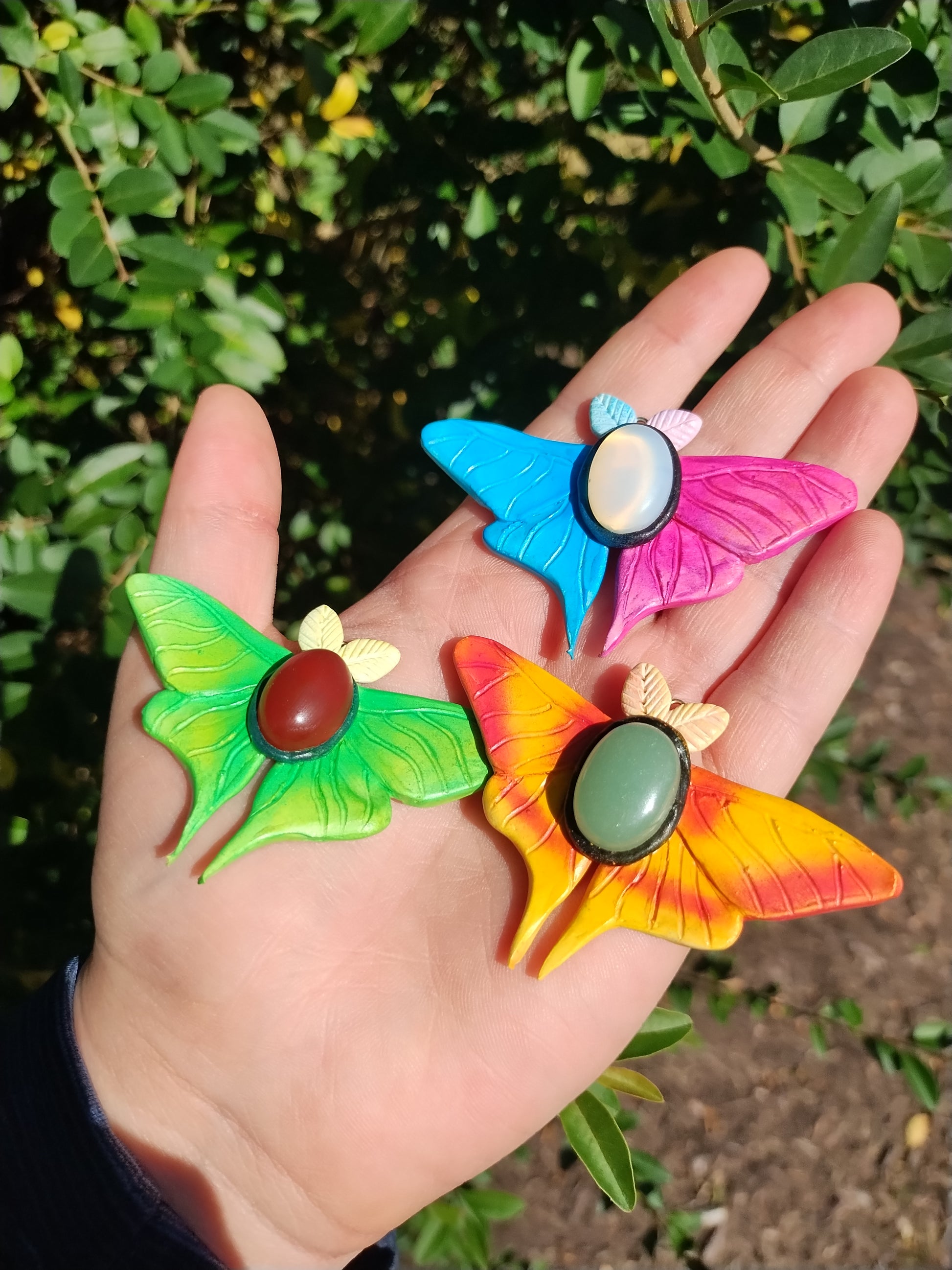 Introducing our one-of-a-kind Cotton Candy Moth pendant! Each handmade pendant features a mesmerizing opalite gemstone center, making it a unique and eye-catching accessory. Embrace your inner quirky self with this playful and whimsical piece. Don't miss out on this sweet treasure!