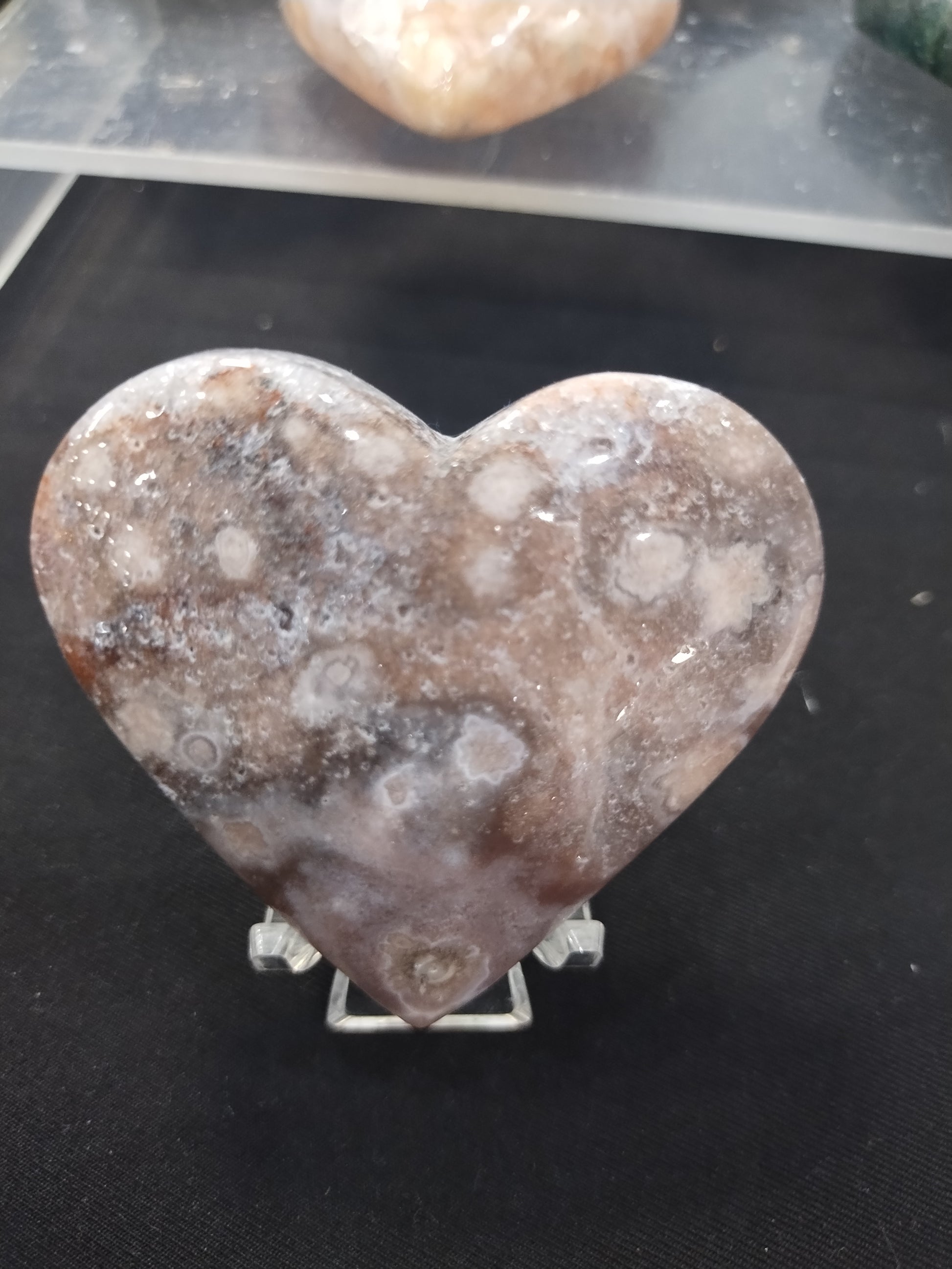 Add a touch of beauty and love to your crystal collection with our Pink Amethyst Heart. This heart-shaped crystal features stunning flower agate plumes, adding unique and intricate patterns to the beautiful pink amethyst. Perfect for meditation, healing, and décor, this crystal is a must-have for any crystal enthusiast.