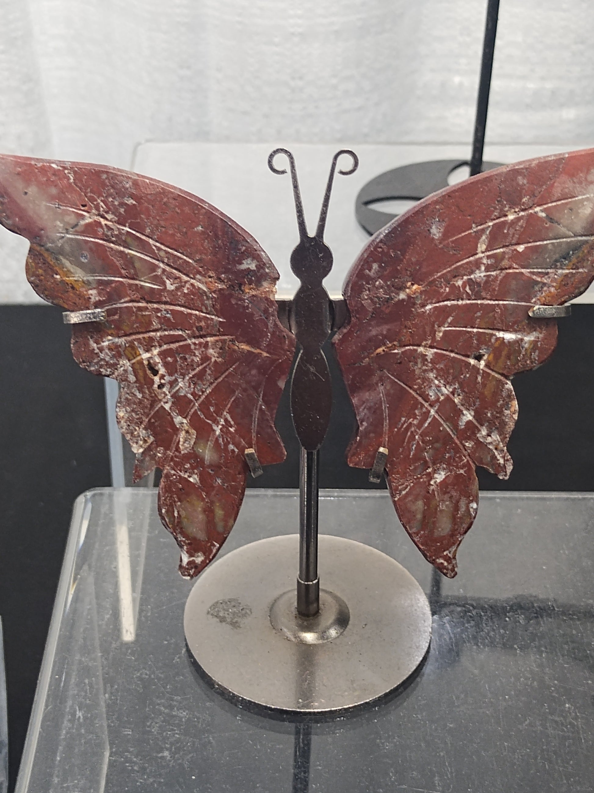 Gorgeous red jasper wings on a metal stand. Perfect statement piece for any collection!